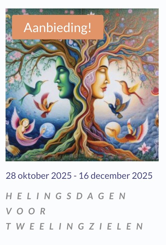 Op 28 oktober begeleid ik in Den Bosch een kleine groep (3 tot 4 deelnemers) in het proces van heling en innerlijke rust tijdens de Helingsdagen voor Tweelingzielen. Je kunt deze dagen ook los deelnemen. Iedere dag heeft een eigen thema. Hier lees je er alles over.
